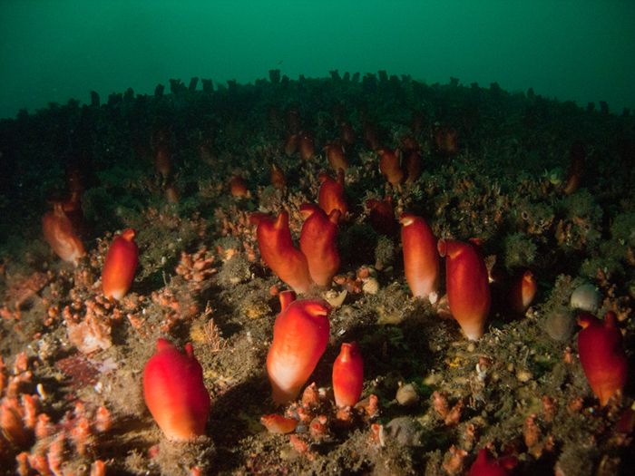 30m 수심에서 흔하게 볼 수 있는 비단멍게 군락