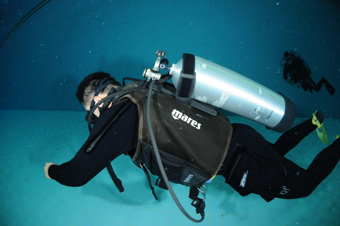 앞에서 언급하였듯이 탱크는 BC에서 절대 분리되지 않는다. 따라서 레귤레이터를 놓치지 않는 한 공기는 지속적으로 공급될 것이다. 다음은 부력을 조절하는데, 안정적으로 수중에 머물고 있다면 중성부력을 유지한다.