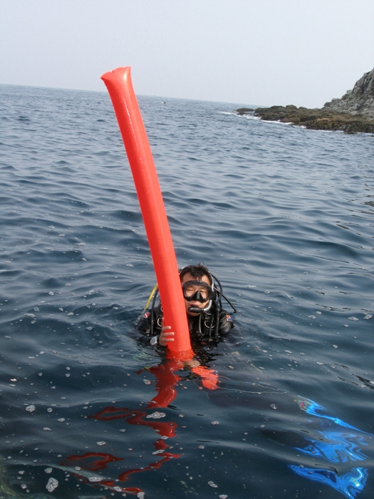사실 많은 조류 다이빙에서의 표준 절차는 통상 그룹의 위치를 표시하여 데리러 갈 수 있게끔 밝고