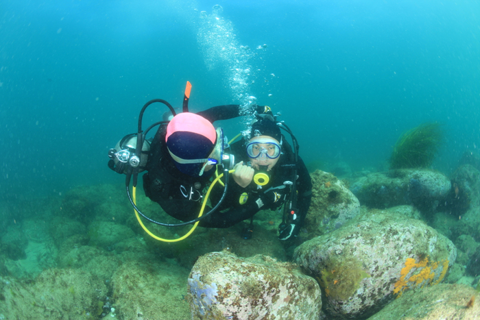 사진 4 : 이동할 때는 버디가 편한 상태로 이동할 수 있게끔 옆에서 횡영으로 유영한다.