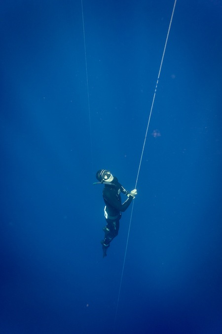 핀 없이 드림줄을 잡고 상승과 하강을 하는 수심 기록경기 방식으로, 동일한 웨이트를 착용해야 한다.