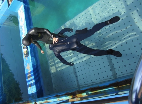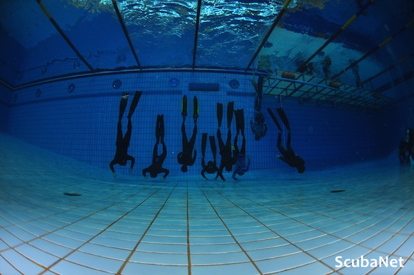 올림픽공원 다이빙 풀에서 스쿠버 다이빙을 연습하는 다이버들