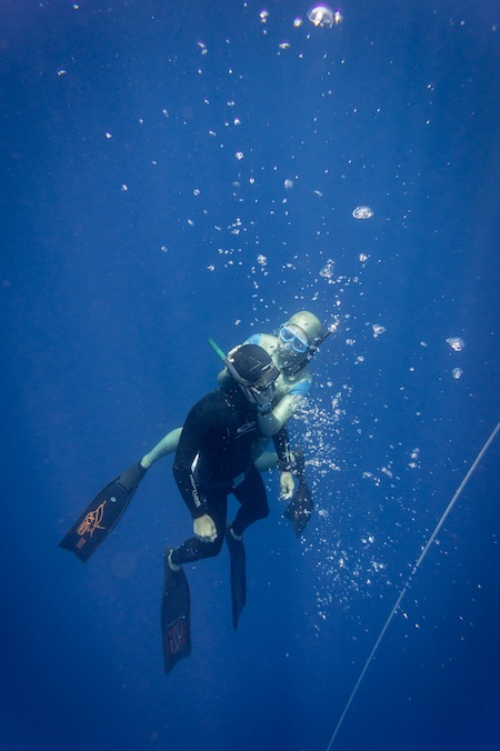 전 다이버가 지켜보는 가운데 연습을 하는 프리다이버 (사진제공: KFT)