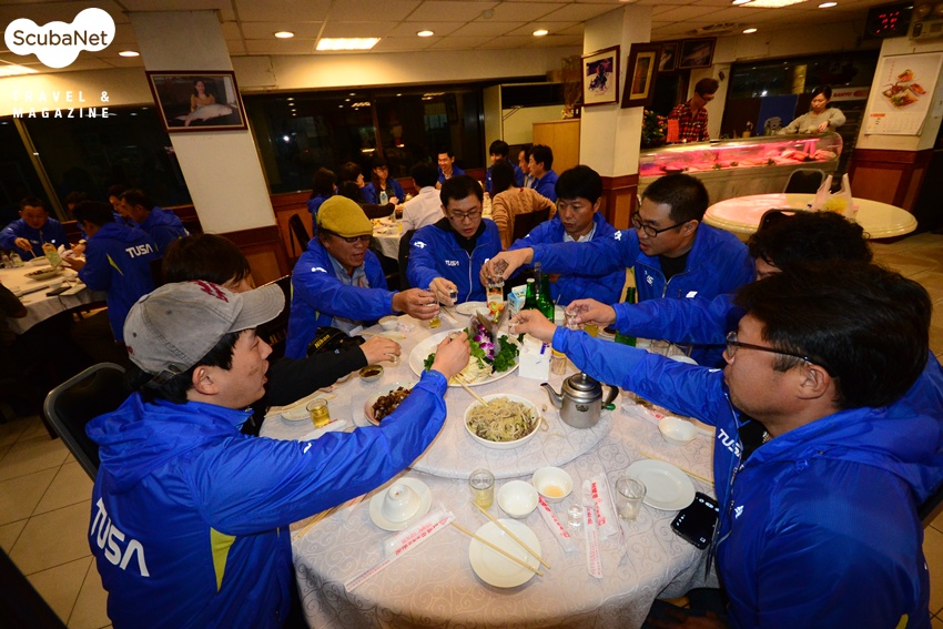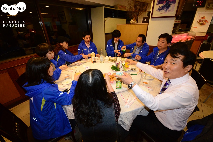 생선회를 비롯해서 푸짐한 중화요리가 제공되었으며, 타바타 타이완의 호스트와 우정사/오션챌린져 임직원 그리고 참가자들이 모두 어울려 즐거운 파티를 벌였습니다. 술은 역시 사람들 사이를 매끄럽게 밀착시켜주는 윤활제 역할을 하여 참가자들 사이에서도 형, 동생으로 호칭들이 바뀌어갔고, 대리점 대표들과 우정사/오션챌린져의 임직원들 사이에도 비즈니스 보다는 인간적인 면에서 화학적 결합이 형성되어 가는 듯 했습니다. 하지만 첫날이고, 새벽부터 이동하느라 피곤했던 참가자들은 저녁식사를 끝으로 호텔로 복귀했으며, 알코올이 부족한 몇몇 사람들은 호텔 지하의 레스토랑에서 맥주를 마시며 2차 시간을 가지기도 했습니다.