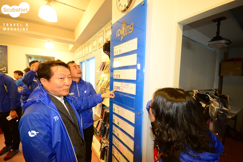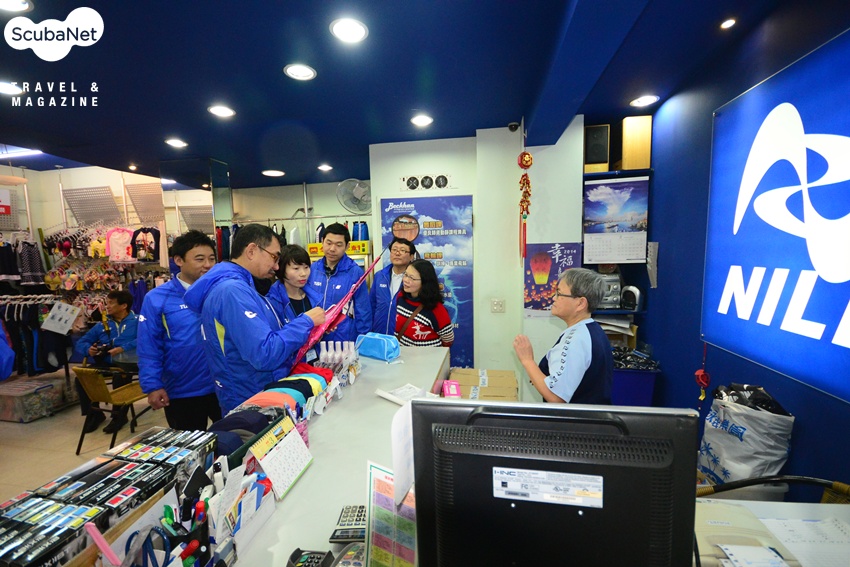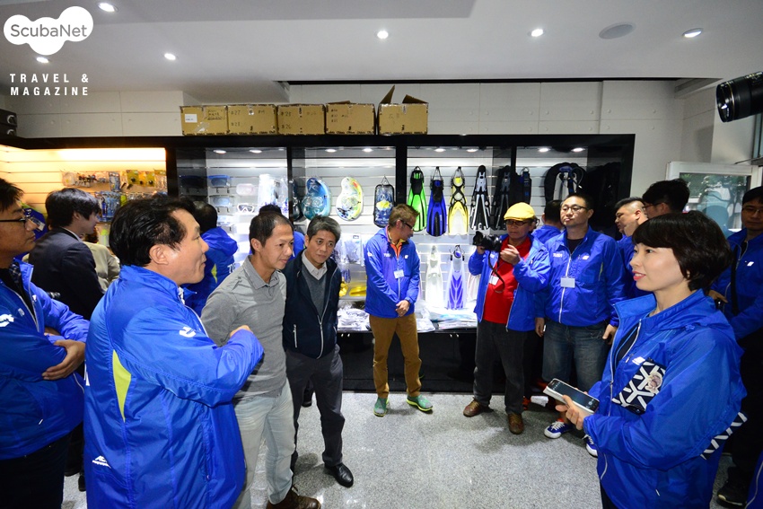 이렇게 타이완을 대표하는 다이빙/수영 전문점들을 순회하였는데 수영전문점 대표들은 다이빙숍에서도 레쉬가드 등 자신들이 취급하는 제품들에 적극적인 반응을 보였고, 이번 방문을 통해 스쿠버 다이빙에도 도전해야겠다는 생각을 가지고 장비와 교육에 관심을 보이기도 했습니다. 스쿠버다이빙 전문점 대표들은 타이완의 잘나가는 다이빙센터들이 어떤 점에서 한국과 차이가 있는지, 무엇을 배울만한 것인지 꼼꼼하게 살펴보았으며, 특히 디스플레이에 많은 관심을 나타냈습니다. 넓지는 않지만 효율적으로 활용하고 있다는 점에서 서울 등 대도시에 매장을 가진 전문점 대표들이 본받을 만 하다고 했습니다.