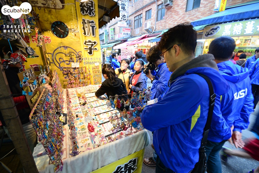 저녁 식사 전에 잠깐 시간이 난 틈을 이용해서 관광을 했는데 타이페이의 서쪽에 있는 담수지역의 구시장이라고 일종의 먹자골목이었습니다. 좁은 골목에 군것질꺼리와 기념품들 가게가 늘어서 있었는데 한국, 일본, 중국의 관광객들이 돌아다니고 있었습니다.
