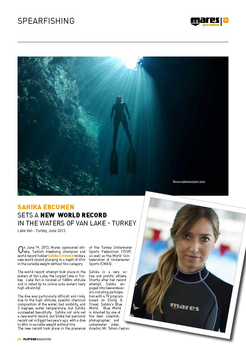 그녀의 세계기록을 갱신했다. 그녀는 프리다이빙 세계기록 시도를 위해 이 장소를 선호한다고 언급했다. Van 호수의 명물인 진주 숭어의 이주에 대한 세계의 관심을 불러일으키기 위함이라고 했다. 또한 지진을 겪은 Van지역의 젊은 지역 주민들이 스포츠에 관심을