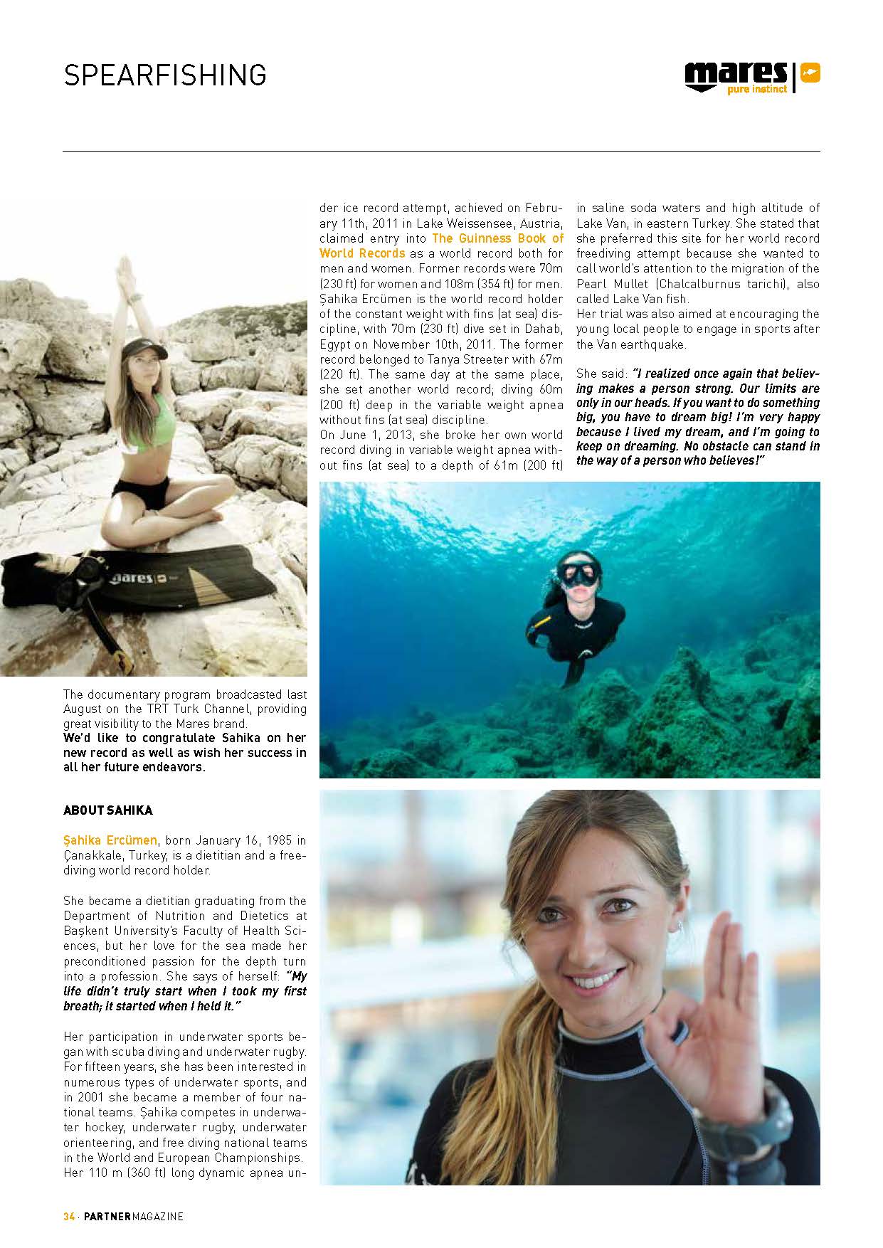 2013년 6월 1일, 마레스는 프리다이빙 챔피언이자 세계 기록 보유자인 터키선수
