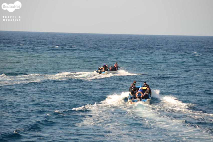 2대의 체이스보트로 다이빙을 나가는 다이버들