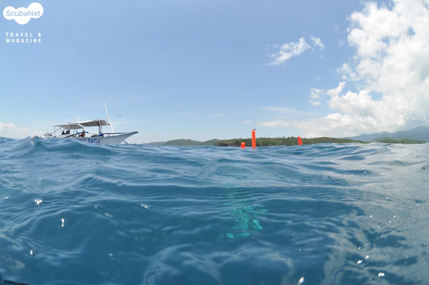 다이버들의 SMB를 확인하면서 근처에서 기다리고 있는 다이빙 보트