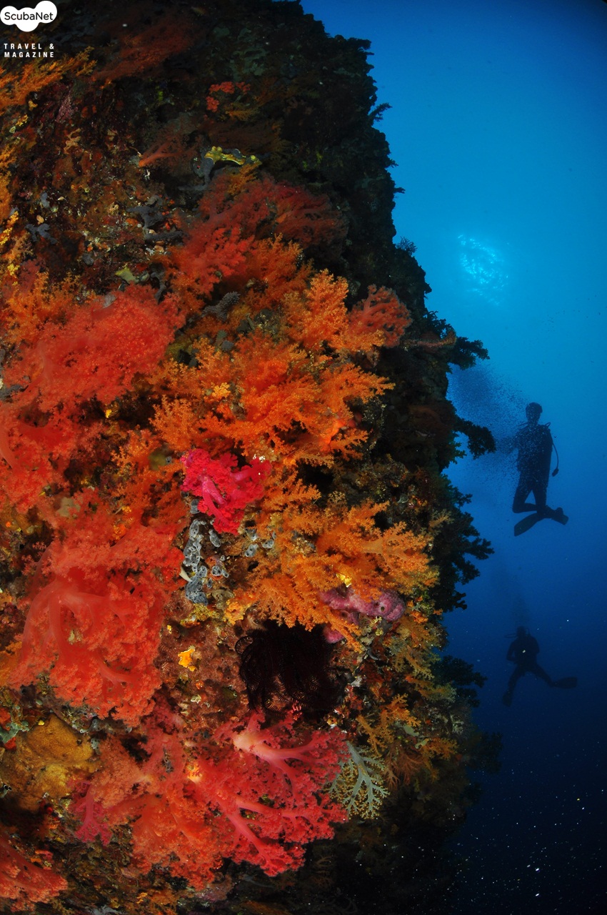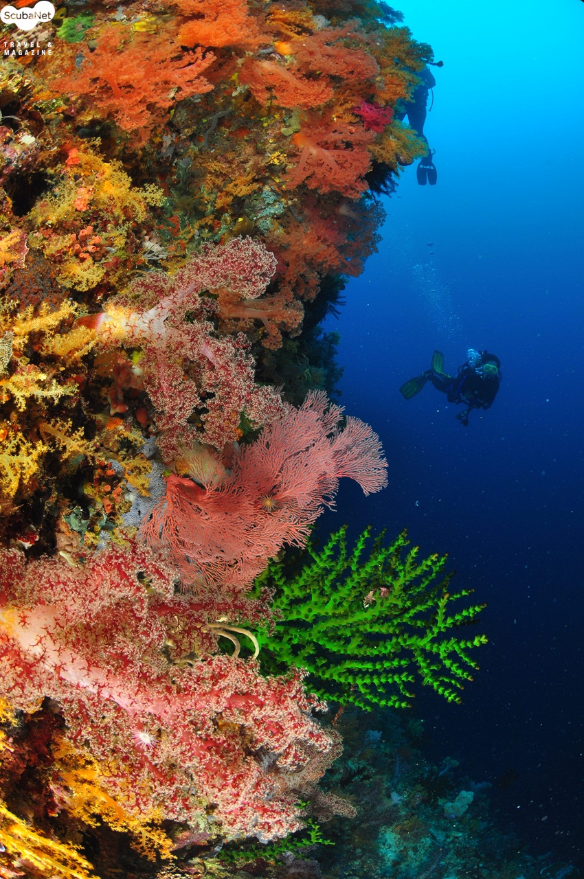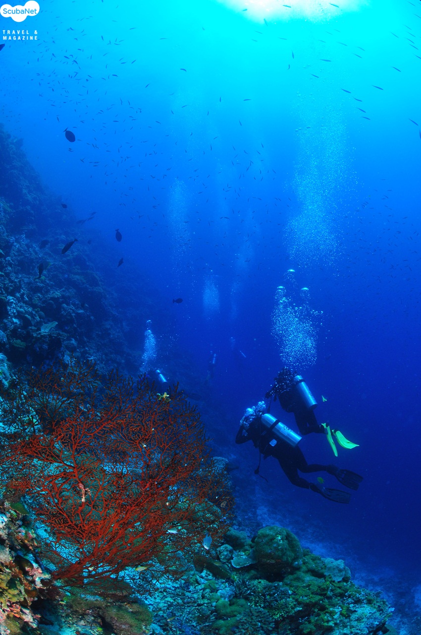 연산호 절벽을 따라 흘러가는 다이버들