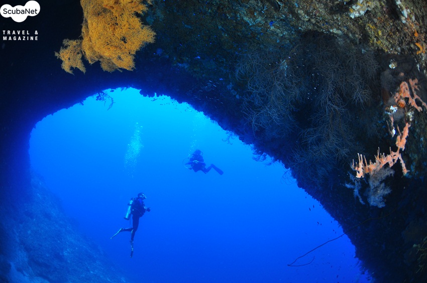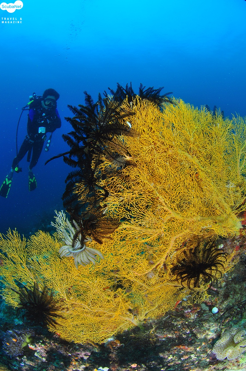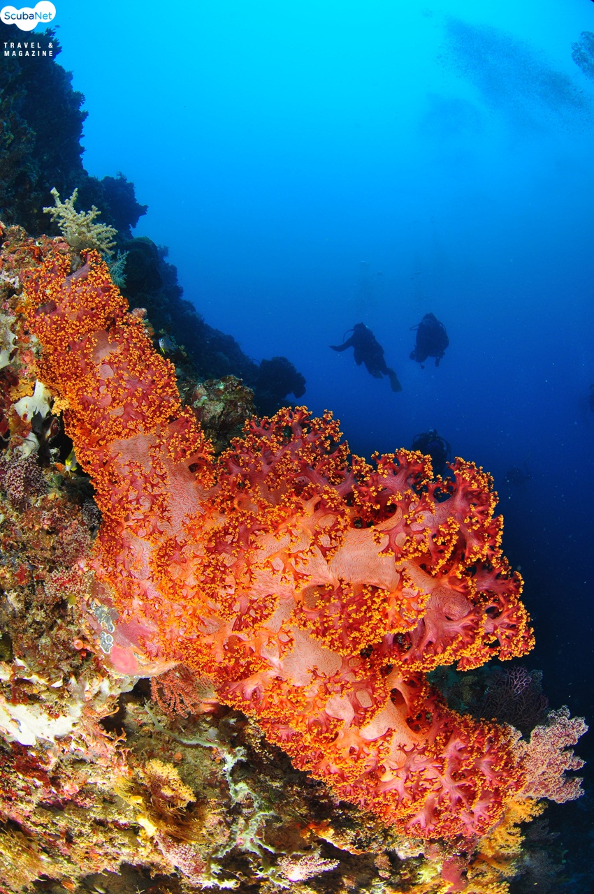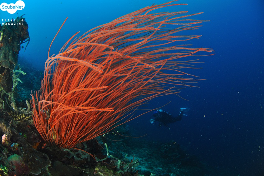 연산호 절벽을 따라 흘러가는 다이버들