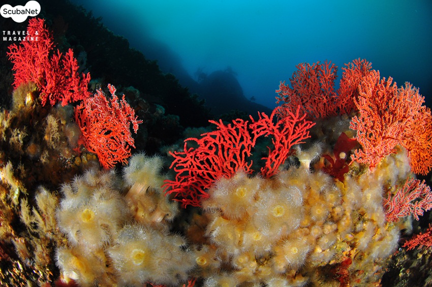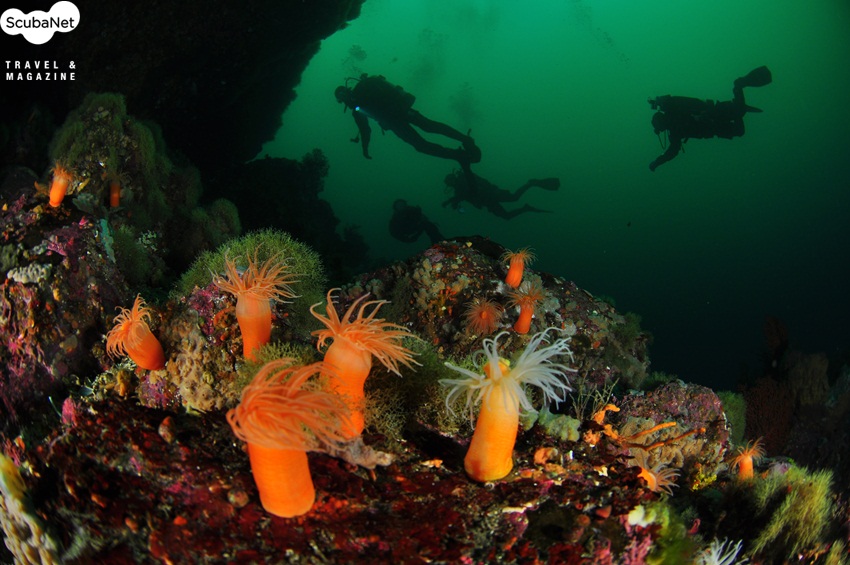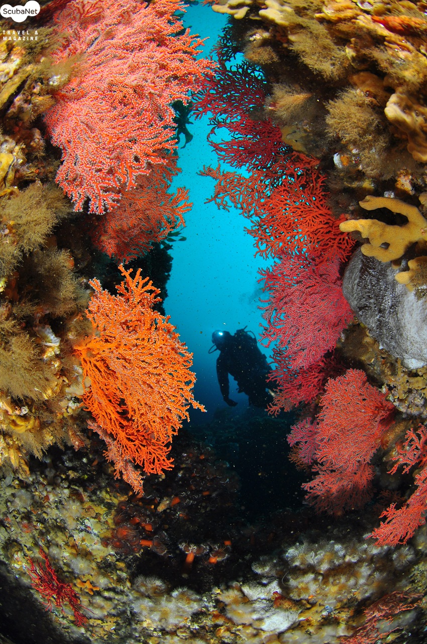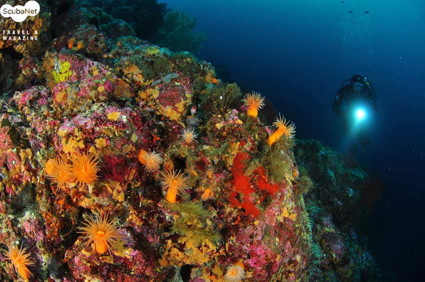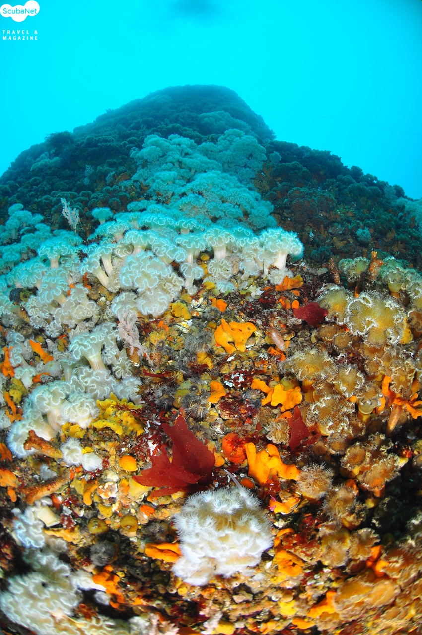 오렌지색 말미잘 군 락 이 있 는 행남등대 수심 30m 지역