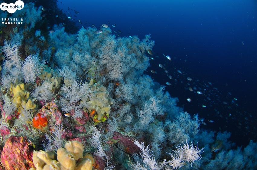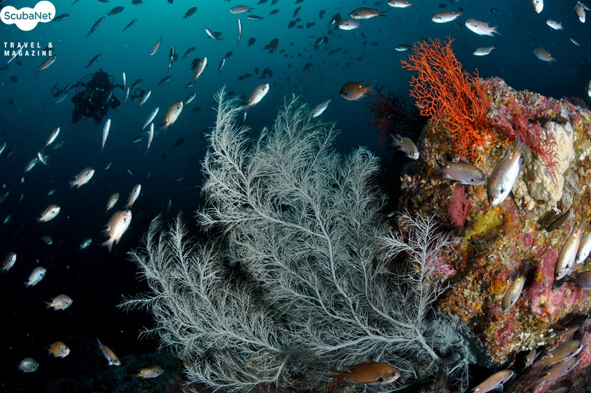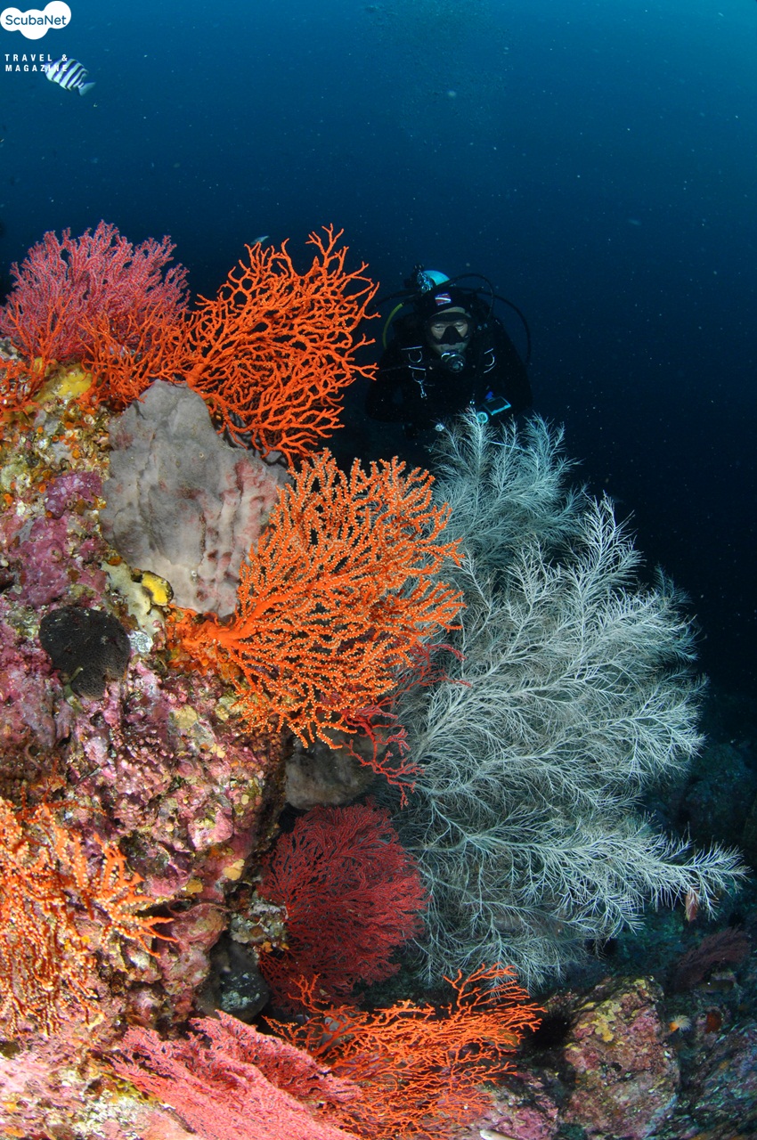 부채뿔산호와 섬유세닐말미잘들이 어우러진 쌍정초의계곡