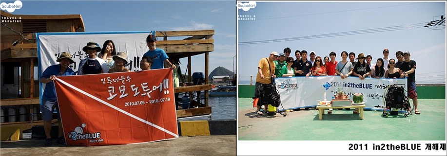 요즘 인터넷 동호회로 가장 활발하게 움직이는 곳은 바로 네이버 카페의 인투더블루(in2theBLUE)일 것이다. 지난 2007년 8월 스쿠버 다이빙에 열의를 가진 젊은 다이버들 몇몇이 모여서 클럽을 만들고 같은 해 10월 네이버에 카페(http://cafe.naver.com/in2theblue)를 개설하였다. 처음에는 비공개로 회원들끼리 투어를 다니고, 후기를 기록하며 정보를 교환하다가 2009년 3월 공개 카페로 전환하였다. 2년 뒤인 2009년 10월 네이버 카페의 메인에 소개되면서 회원들이 기하급수적으로 늘어나기 시작했고, 2010년 창립 3주년 파티에는 120명이나 되는 회원들이 오프라인 행사에 참가하기도 했다. 현재 카페멤버는 5,000 명이 넘었고, 전체 게시글이 10,000건, 총 방문자 수 600,000명을 돌파하여 스쿠버 다이버 동호회로서는 가장 활발한 활동을 보여주며 다이빙계의 주목을 끌고 있다.