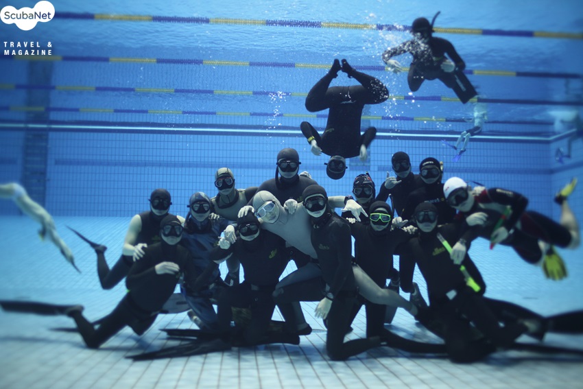 매주 일요일 10시 00분부터 시작되는 연습은 25m의 풀을 보통 25~30초 정도로 반복하여 잠영을 하게 되는데 점점 휴식시간을 줄여가며 수차례 반복한다. 50m 잠영의 경우는 테스트 통과자에 한해서 연습할 수 있으며, 그 외에도 익스헤일, 스태틱(숨참기), 구조연습이 진행되며 모든 연습은 항상 세이프티와 버디시스템으로 안전하게 실시된다.