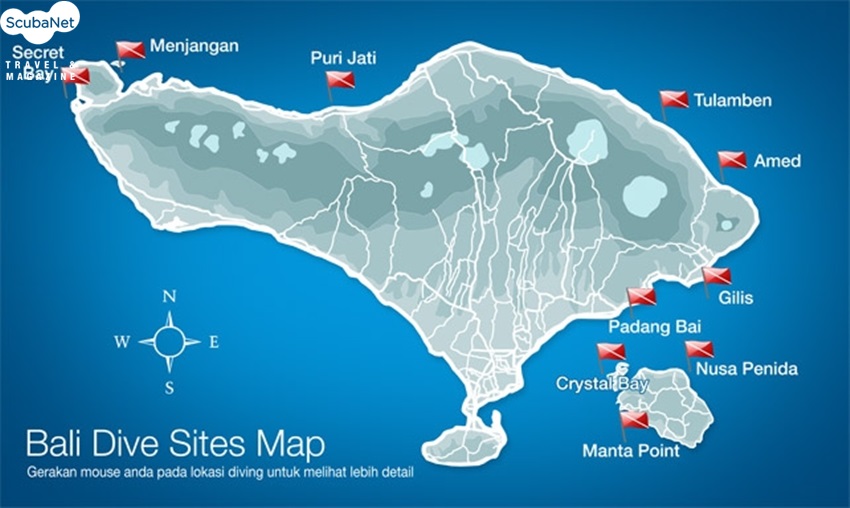 신들의 섬이라 불리는 인도네시아 발리는 제주도의 3배 정도 되는 큰 섬으로 힌두교의 이색적인 문화와 아름다운 자연 경관 그리고 고급스러운 리조트 등이 잘 발달되어 있어 신혼여행은 물론 고급 휴양 여행지로 각광을 받고 있다. 또한 천혜의 자연조건으로 인해 파도타기를 즐기는 서퍼들과 스쿠버 다이버 등 해양레저를 즐기는 관광객들에게도 유명한 곳이다. 발리는 4월~9월이 건기이며, 스쿠버 다이빙하기에 가장 적기는 6월~9월을 꼽는다.