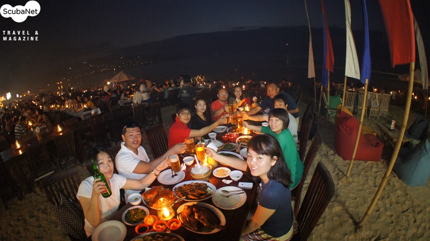 짐바린 비치의 씨푸드 레스토랑을 찾은 일행들