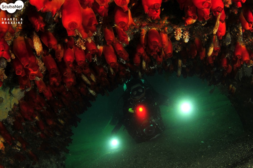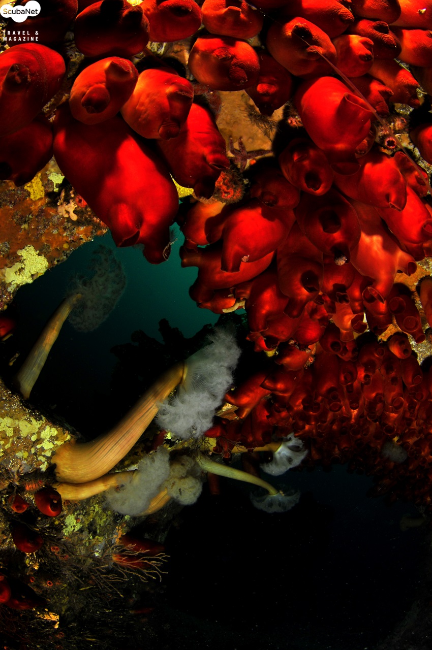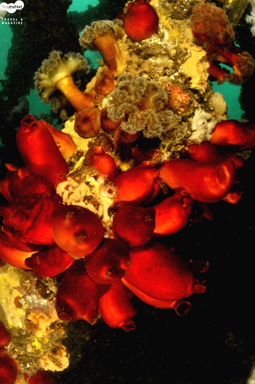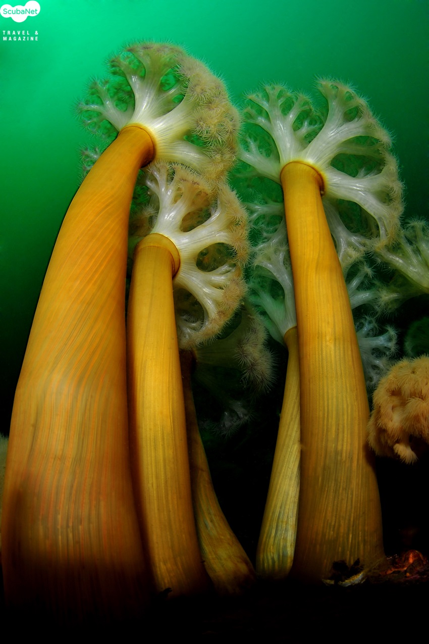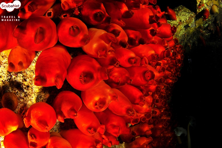 점보어초 내부를 가득 채우고 있는 비단멍게와 섬유세닐말미잘 군락