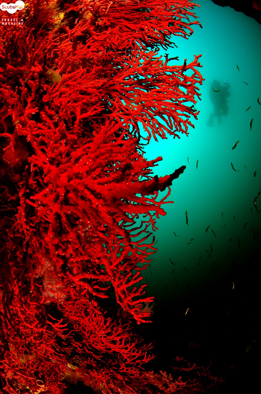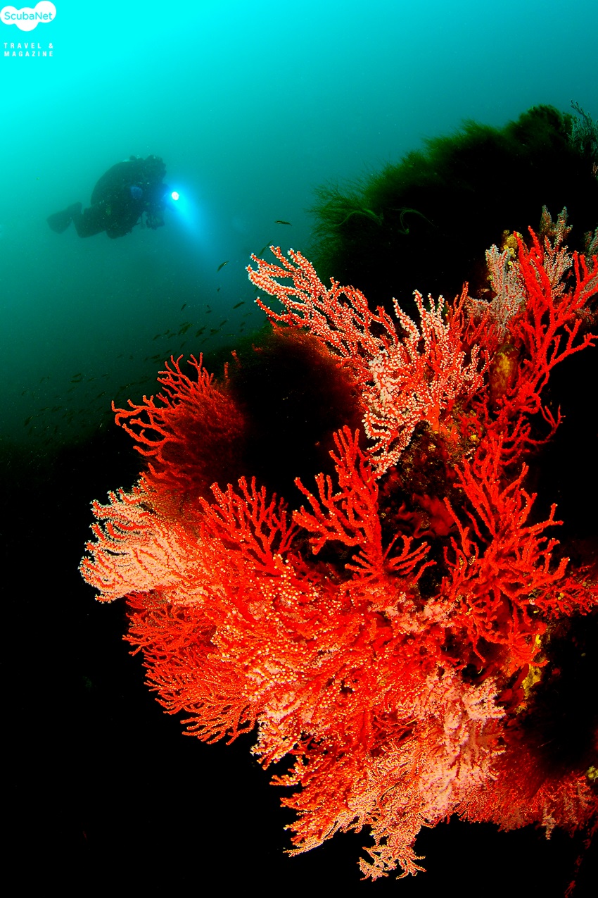 원통어초의 부채뿔산호 군락과 다이버