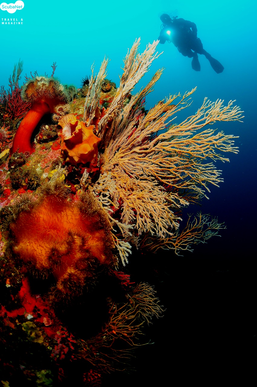 18m톱니어초의 비단멍게 군락과 다이버 모델_심상선