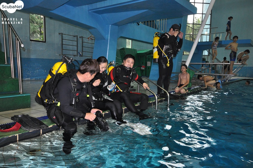김효진 씨는 역시 2000년 슈퍼모델 SBS스포츠 상을 수상한 후 패션모델과 배우 등으로 활동하고 있다. 이들 두 사람은 허영도 트레이너(38에어텍 대표)로부터 스쿠버 다이빙 교육을 받게 되었으며, ScubaNet에서는 이들의 교육 과정을 밀착 취재하기로 했다. 이들 두 사람에게는 다이브 자이언트에서 스쿠버 장비 풀셋트를 협찬하였다.이날 잠실수영장에서 진행된 수영장 교육에는 KBS 2TV의 생생정보통과 서울신문 NTN 등에서 나와서 취재를 하였고, 마침 스쿠버다이빙 단체 교육을 위해 잠실수영장을 찾은 해양소년단 어린이들도 양준혁 선수에게 싸인 공세를 펴는 등 그 인기를 실감할 수 있었다. 이날 양준혁 씨와 김효진 씨는 장비세팅과 착용, 스킨 스위밍, 호흡기찾기, 수경물빼기, 이퀄라이징, 중성부력, 옥토퍼스호흡 등의 스킬을 성공적으로 배웠으며, 추후 반복된 수영장 실습을 마친 후에 해양실습을 함께 떠나기로 했다.