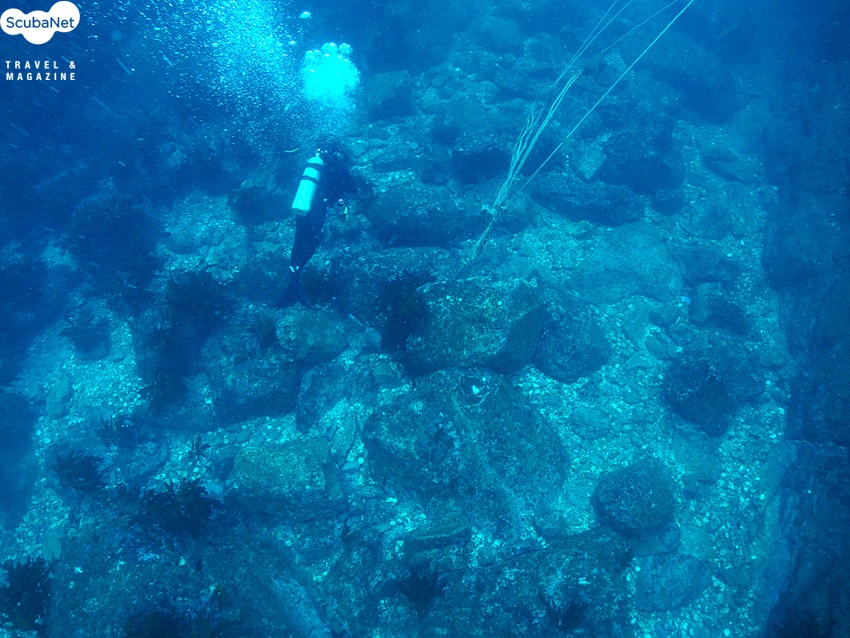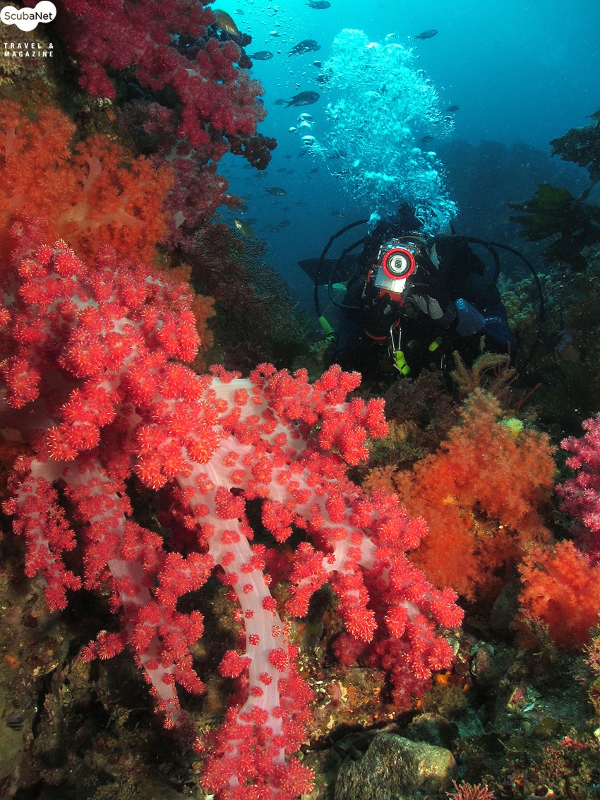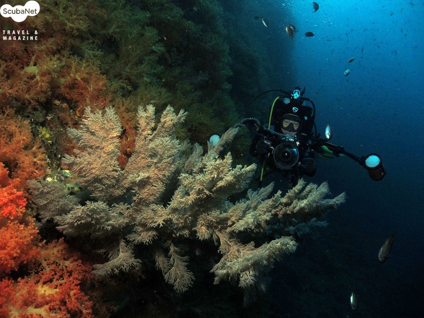 연산호 절벽에서 해송을 촬영중인 다이버_ 모델:윤세정