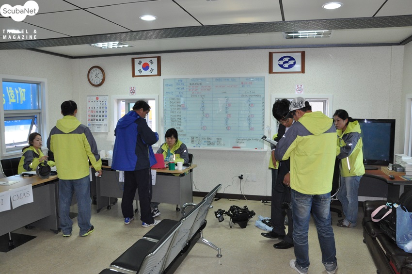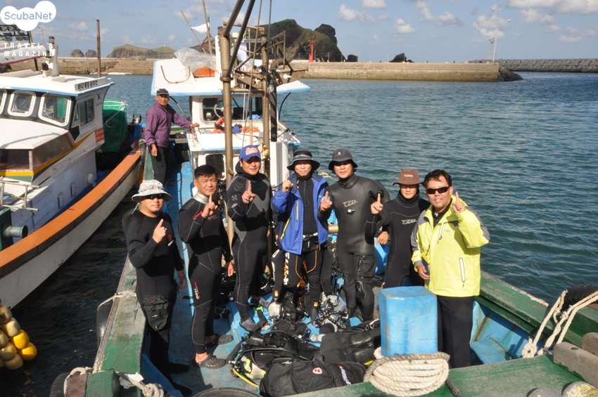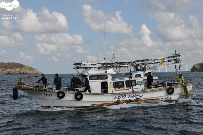 촬영대회 포인트로 접근하는 어선의 다이버들