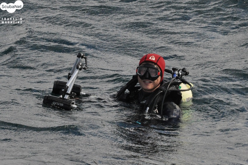 다이빙을 마치고 상승하는 수중사진가