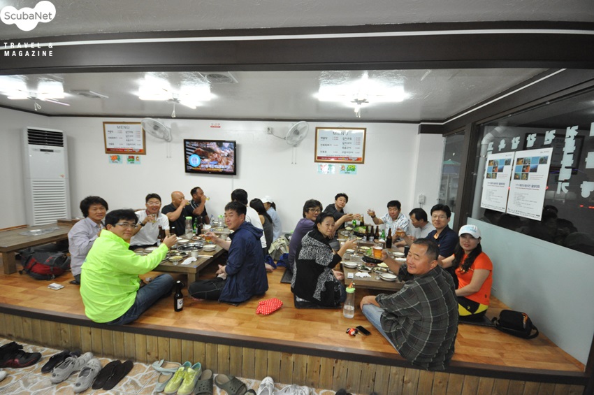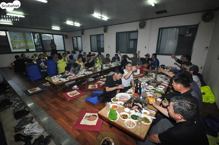 수산자원사업단에서 베풀어준 만찬에 참가한 다이버들