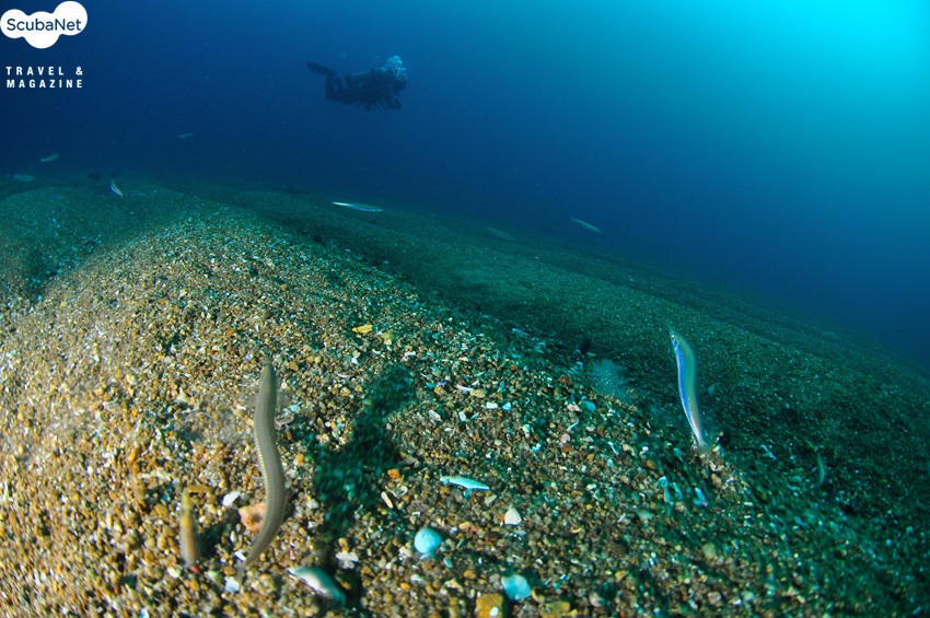 사천의 삼각어초가 있는 굵은 모래지역에서 까나리들을 관찰할 수 있다