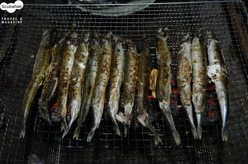 갓 잡은 까나리를 그대로 숫불에 구워먹으면 맛이 담백하다