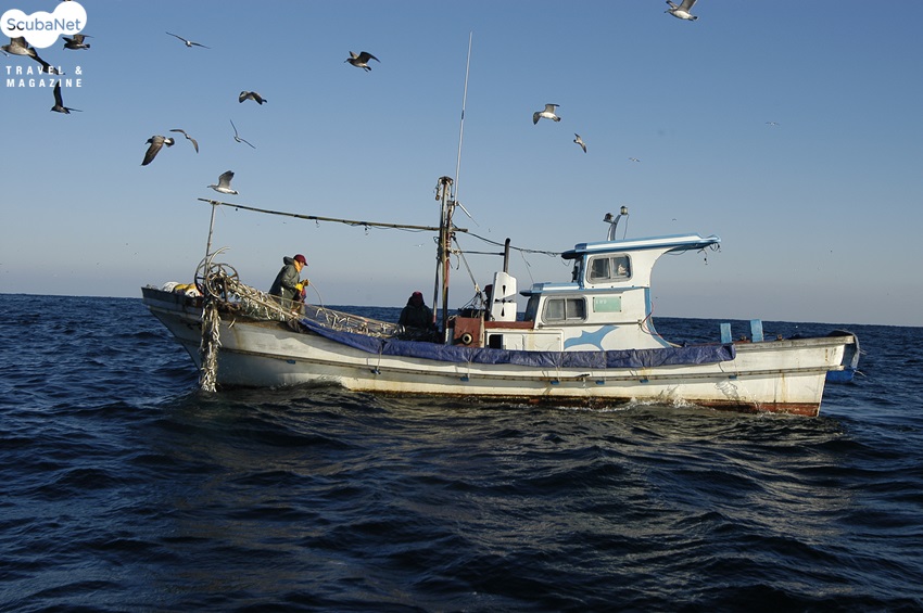 수중에 내린 그물에도 까나리들이 가득 꽂혀 있다