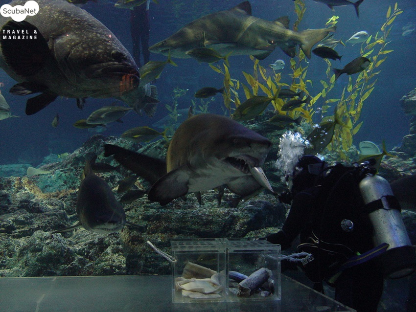샌드타이거 상어에게 먹이를 주는 것은 고도의 집중력을 요하는 작업이다