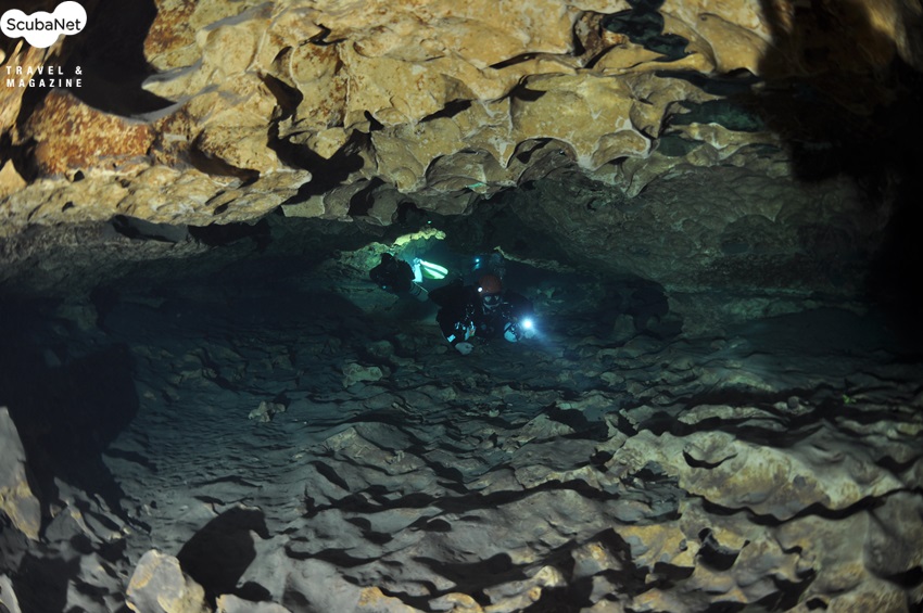 동굴 DPV 코스를진행하는 리차드와 권혁기, 오상준씨