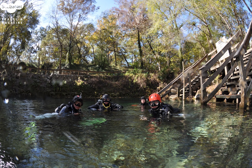 지니 스프링(Ginnie Springs)지니 스프링은 가족들이 함께 캠핑을 즐기기에도 좋은 유원지이다. 수영도 하고, 다이빙도 하고, 동굴 다이빙도 가능한 곳인데 공원 안에 충전과 장비렌탈이 가능한 다이빙숍이 있다. 특히 볼룸(Ballroom)이라는 캐번은 오픈워터부터 캐번, 캐이브 다이버들가지도 모두 함께 다이빙을 즐길 수 있는 곳이다. 다른 곳에서는 라이트를 휴대할 수 없는 오픈워터 다이버들도 이곳에서는 라이트를 휴대하고 다이빙을 즐길 수 있다. 캐이브 다이버들의 훈련장이라고 할 수 있다.이곳에 데빌 스프링이 있다. 데빌스 아이(Devils eye), 데빌스 이어(Devils ear), 리틀 데빌(Little Devil) 3개의 샘이 동굴 다이버들의 입구가 된다. 데빌스 이어와 데빌스 아이는 동굴 속 약 20m 지점에서 만난다. 리틀 데빌은 수직으로 뚤린 좁은 균열로 사이드마운트나 노마운트로 들어갈 수 있는 곳이다.