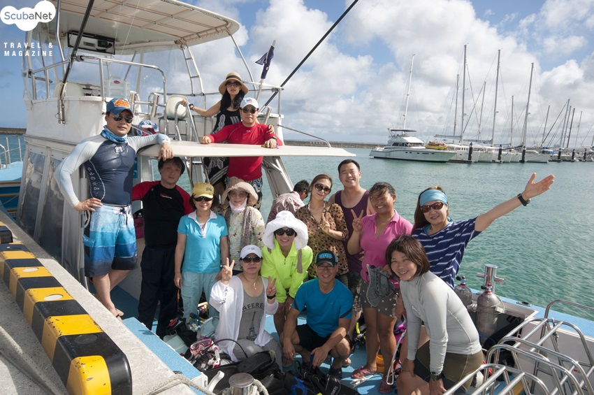 기노완 마리나에서 케라마 다이빙을출발하는 인어와마린 팀