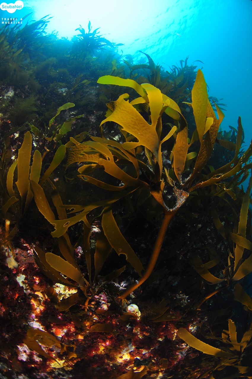 감태를 비롯한 대형 갈조류와 다양한부착생물들이 무성한 제주도 수중의 모습