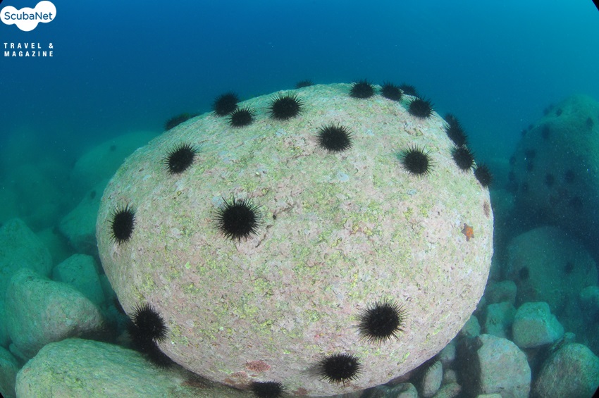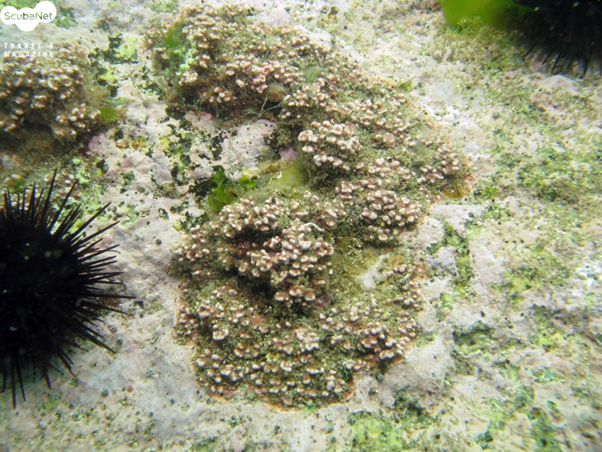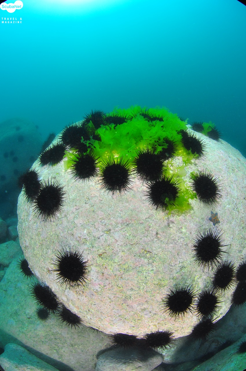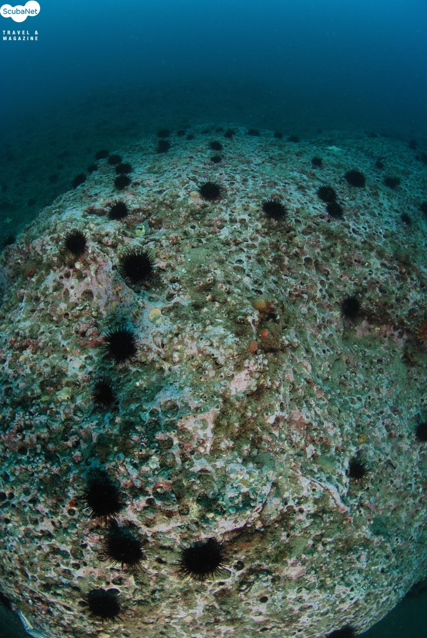 무절석회조류들만 붙어있는 바위 위로 성게들만 무성하다.