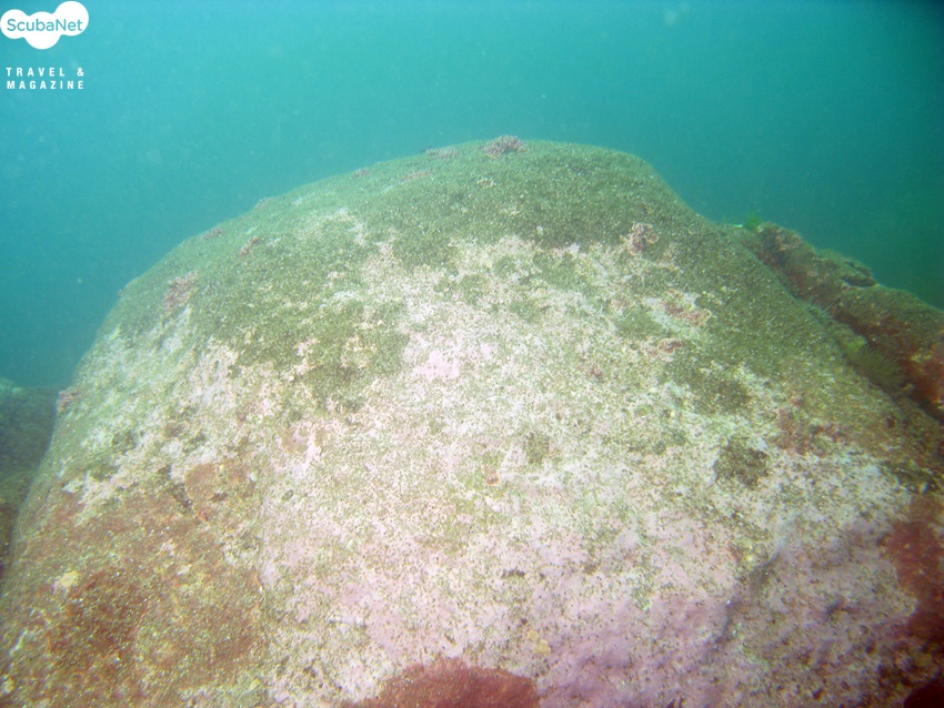 해조류가 무성하게 있어야 할 수중 암반 그러나 무절석회 조류만이 덮여있는암반은 쓸쓸하다 못해 적막해 보인다