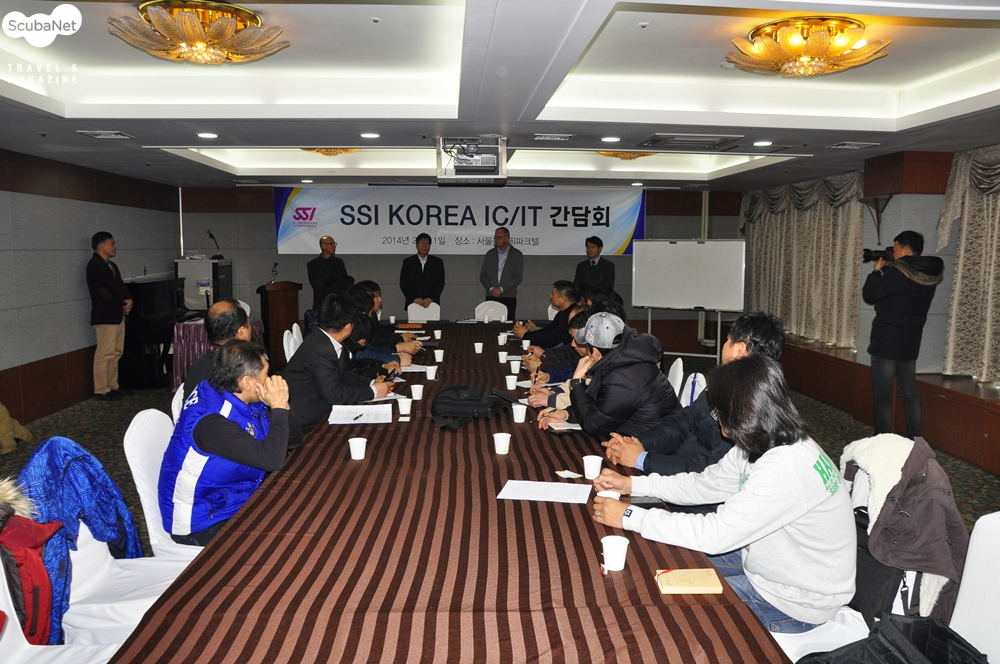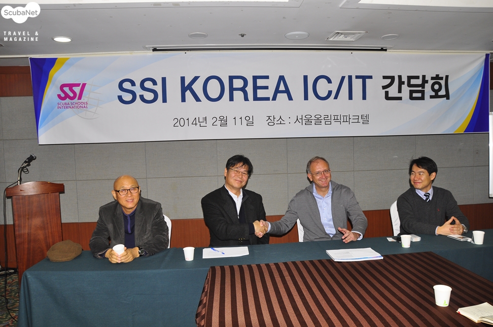 SSI Korea에서 2014년 2월 11일 오전 10시부터 기자회견 및 IC/IT 간담회를 개최했습니다. 이번 행사는 지난 2014년 1월 1일부로 HEAD/MARES 본사에서 SSI를 인수합병했다는 소식이 알려진 이후에 세간의 비상한 관심과 소문에 대해 공식적으로 입장을 밝히고 설명하는 자리였습니다. 마레스와 SSI의 대표인 Gerald Skrobanek 사장이 직접 내한하였고, 마레스코리아의 우대혁 대표가 SSI 코리아 대표로서 참가하였으며, 이신우 씨가 SSI 아시아 담당 매니져로서, 강영천 평가관이 SSI 코리아의 교육담당관으로서 배석하였습니다. 스쿠버넷 매거진의 최성순 대표와 김현덕 기자 그리고 해저여행, 스쿠버다이버, 수중세계의 기자들이 참석하였습니다.