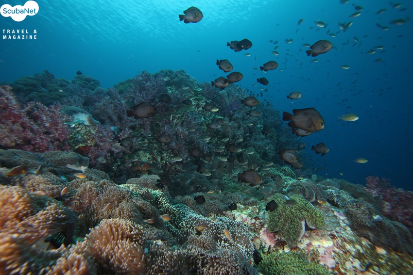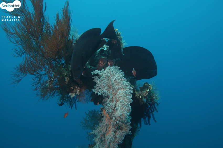 몰라몰라는 정말로 경이로운 생선이다. 뒤의 꼬리부분이 없는 반 토막 같이 생긴 커다란 생선이 조그만 입을 벌리고 서서히 다가오고 있었다. 클리닝 스테이션의 작은 생선들이 열심히 만타를 따라오고 있다.갑자기 정신이 퍼뜩 들었다. 사진을 찍어야 한다. 사진기를 들고 몰라몰라에 접근 하려 하자 가이드가 발을 잡아 당긴다. 접근하지 말고 기다리란다. 벽에 등을 대고 기다리자 신통하게도 몰라몰라가 도망가지 않고 계속 우리 쪽으로 서서히 오고 있었다. 사진을 몇 장 찍었으나 플래시 없이 멀리서 찍다 보니 사진이 신통치 않다. 좀 더 접근 할 때까지 기다려야 한다. 이때 어떤 참을성 없는 다른 팀의 다이버가 몰라몰라에 사진기를 들고 바짝 다가갔다. 나는 속으로 으악 하고 비명을 질렀다. 저 녀석 때문에 몰라몰라가 도망을 갈 것이다.더 이상 기다리지 않고 셔터를 눌러 대기 시작했다. 도망가가 직전에 한 커트라도 건져야 했다. 사진을 마구 찍다 보니 그 녀석이 사진 속에 몰라몰라와 함께 잡힌다. 몰라몰라는 순식간에 사라지고 우리는 녀석을 째려 보았다.