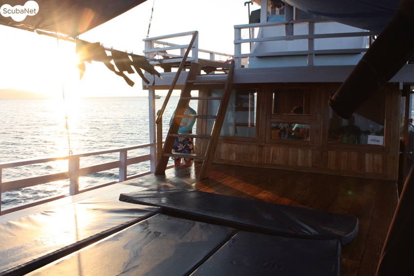리브어보드의 장점코모도 국립공원의 야간다이빙과 코모도 남부의 다이빙이 모두 가능하다. 해가 떨어지기 전에 라부안바조로 돌아오는 데이트립으로는 코모도 국립공원 야간다이빙을 할 수 없다. 대물로 유명한 코모도이지만 와이닐루(wainilu), 핑크비치(pink beach) 등 훌륭한 먹 다이빙 포인트들도 많다. 야간다이빙을 마치고 수면으로 올라오면, 사방은 온통 깜깜한 가운데 눈이 시리게 반짝이는 별빛이 수면 위로 내려앉는다. 잊지 못할 순간이 될 아름다운 풍경이다. 또 데이트립으로는 거리 상 코모도 남부까지 다녀오기에 무리가 따른다. 북부의 날씨가 좋은 시기에 남부의 날씨는 거칠어지는 것도 남부에 가는 것을 어렵게 만든다. 하지만 리브어보드로는 코모도 남부까지 돌아볼 수 있다.