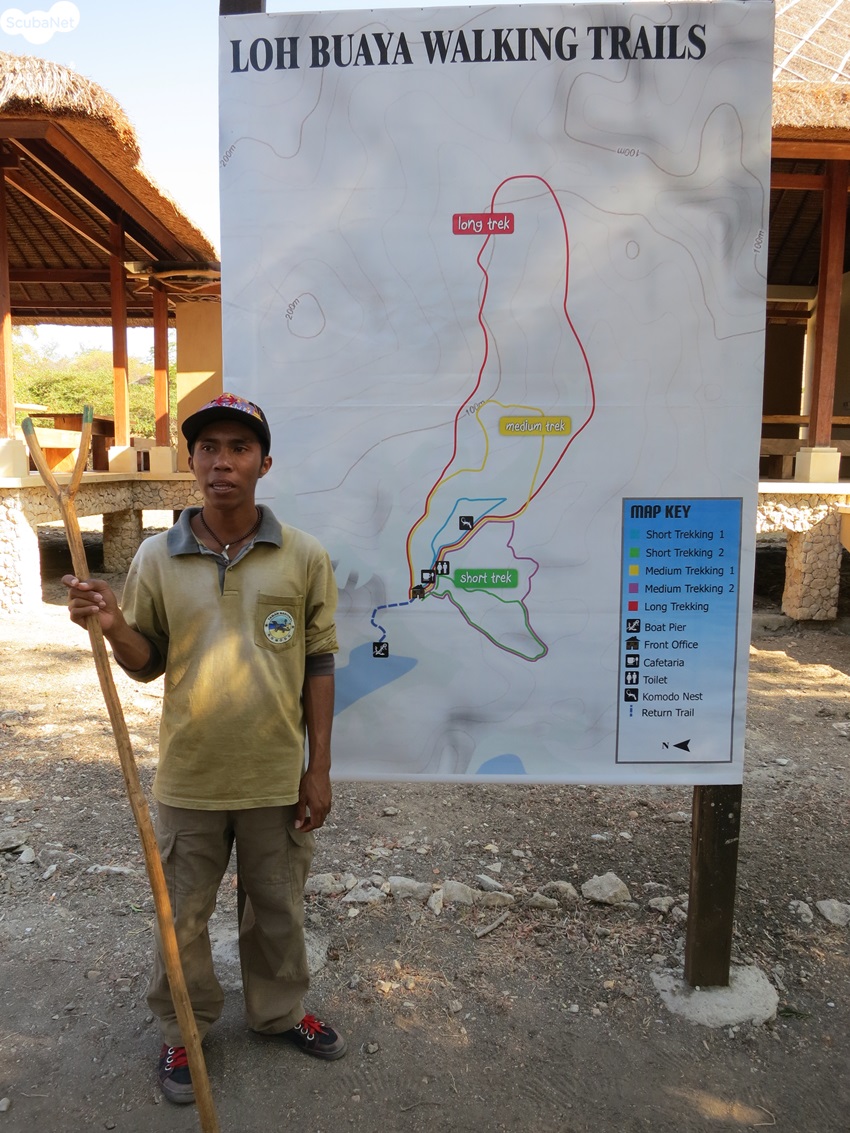 다이빙이 목적인 여행이지만 코모도 왕도마뱀의 유일한 서식지인 코모도에 온 이상 트레킹을 하지 않을 수는 없다. 코모도 왕도마뱀은 코모도 섬과 린차 섬 전역에 걸쳐 서식하는데 침 속의 박테리아로 먹이 사냥을 하는 것으로 알려져 있다. 침 속의 박테리아가 맹독성을 띄어 커다란 버팔로도 코모도 왕도마뱀에게 물리면 1주일 내에 죽는다고 한다. 트레킹은 린차섬 북부의 Loh Buaya에서 시작된다. 트레킹 시간에 따라 short, medium, long 코스가 있다. 가장 짧은 short 코스의 경우 20분이 소요된다. 평소에는 느릿느릿 움직임이 거의 없어 보이는 코모도 왕도마뱀이지만 언제 어떤 일이 벌어질지 모르므로 항상 가이드의 안내에 따라 안전하게 이동하는 것이 중요하다.