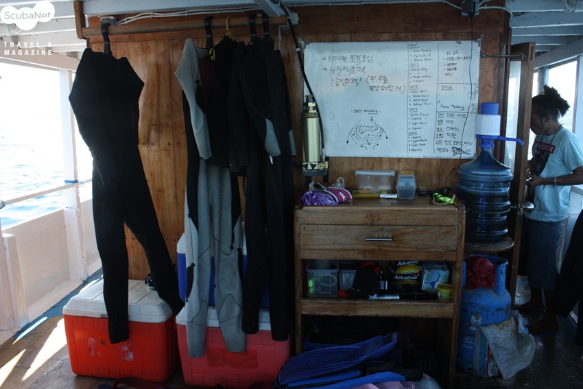 리브어보드의 단점일단 육지에서 먹고 자는 것 보다 불편하다. 좋은 리브어보드 보트를 이용한다면 불편함이 덜 하기는 하겠지만 육지의 호텔보다는 편하기 힘들 것이다. 하지만 익숙해지고 나면 그 안에서도 충분히 여유롭게 즐길 수 있다.