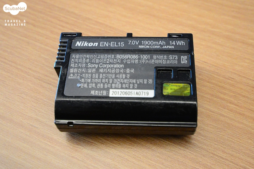 D800용 배터리. 보조배터리는 무조건 기내 휴대해야 한다.
