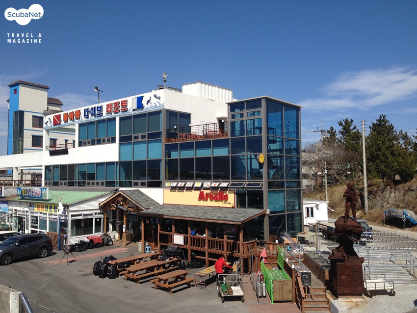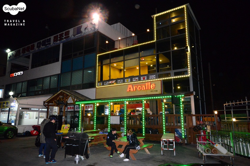 3층 구조의 카페도 붙어 있다. 바로 앞 선착장에서 스쿠버다이빙을 출발하며 리프트가 달려있는