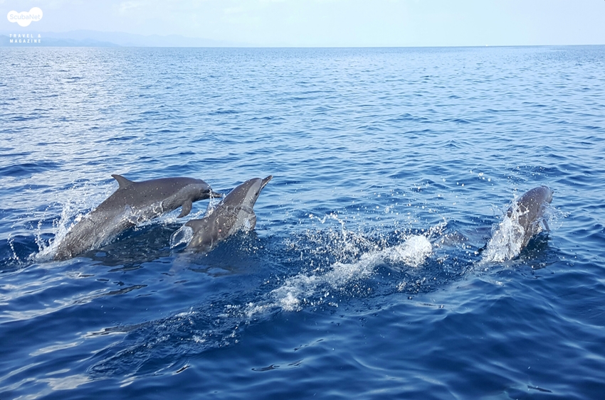 다이빙 가는 중에 만난 돌고래들일주일 일정을 마치고 소롱으로 떠나기 위해 선착장에 가니 남아 있는 투숙객을 포함하여 모든 스태프들이 노래와 춤으로 환송을 해주며 한 명 한 명 모두 서로 인사하는 시간을 가졌다. 참 익숙하지 않은 불편한 상황일 수도 있지만 일주일 나름 같이 다이빙하고 식사하고 이야기 하면서 생긴 우정은 형식적일 수 있는 환송행사를 즐거운 축제처럼 느끼게 해 주었다. 같이 출발하는 스위스 노부부의 부인은 하염없이 눈물을 흘리고 있었다. 소롱으로 돌아오는 길에는 돌고래 무리들과 고래들이 두 번째 환송식을 열어 주었다.