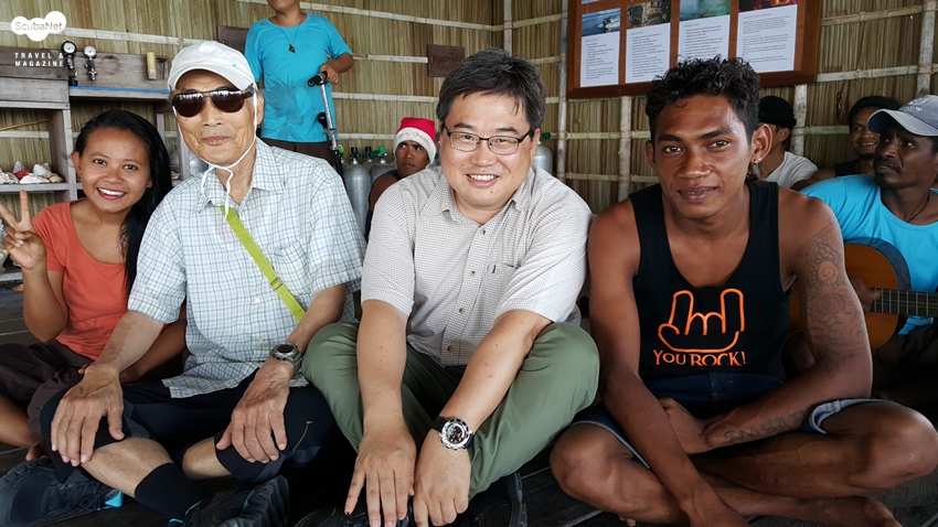 일주일간의 리조트 생활을 마무리하고 나오는 길에 다이브마스터들과 한 장무사히 노인 아버지와 중년 아들의 다이빙 여행을 마치고 돌아오는 길에 이런 저런 생각을 해본다. 우리나라도 장애인이나 노인들이 즐길 수 있는 시설과 환경을 만들어 보는 건 어떨까? 노인이나 장애인이 즐길 수 있는 인프라를 만든다면 아마도 더 많은 사람들이 편하고 안전하게 다이빙을 즐기는 붐이 일어나지 않을까? 그런 상상을 해 보았습니다.