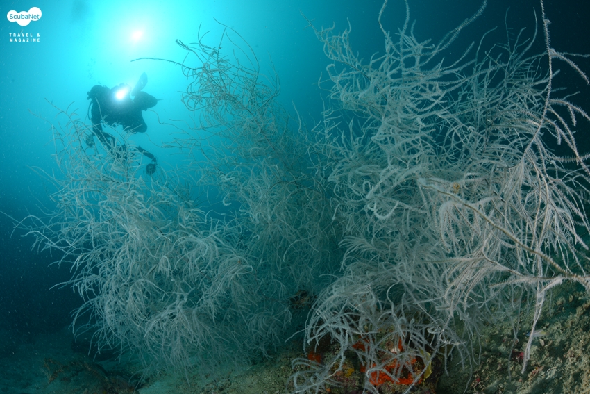 루송 코랄가든에서 만난 흰색의 블랙코랄 숲.루송(Rusong) 섬에 위치한 코랄가든은 다이버들과 스노클러들이 함께 즐길 수 있는 곳이다. 수면에서 수심 15m 내외까지 슬로프를 따라 다양한 산호들이 군락을 이루고 있고, 그 아래로는 모래지역이었다. 조류를 따라 흘러가면서 다이빙을 했는데 산호의 종류들이 엄청나게 다양했다. 부채산호, 회초리산호, 고르고니언산호, 연산호, 해송 그리고 얕은 수심으로 상승하면 사슴뿔산호, 테이블산호, 레투스산호 등 다양한 경산호들도 군락을 이루고 있다. 마치 파푸아뉴기니에서 새로운 리프를 찾았을 때처럼 엄청난 다양성에 환호성을 질렀다. 조류가 강하고, 시야가 그다지 좋지 않았던 점을 제외하고는 정말로 정신 없이 셔터를 눌렀던 멋진 다이빙 포인트였다. 부착생물 외에도 제비활치, 바라쿠다, 옐로우스내퍼, 바다거북 등 어류들과 해양생물이 풍부했다.